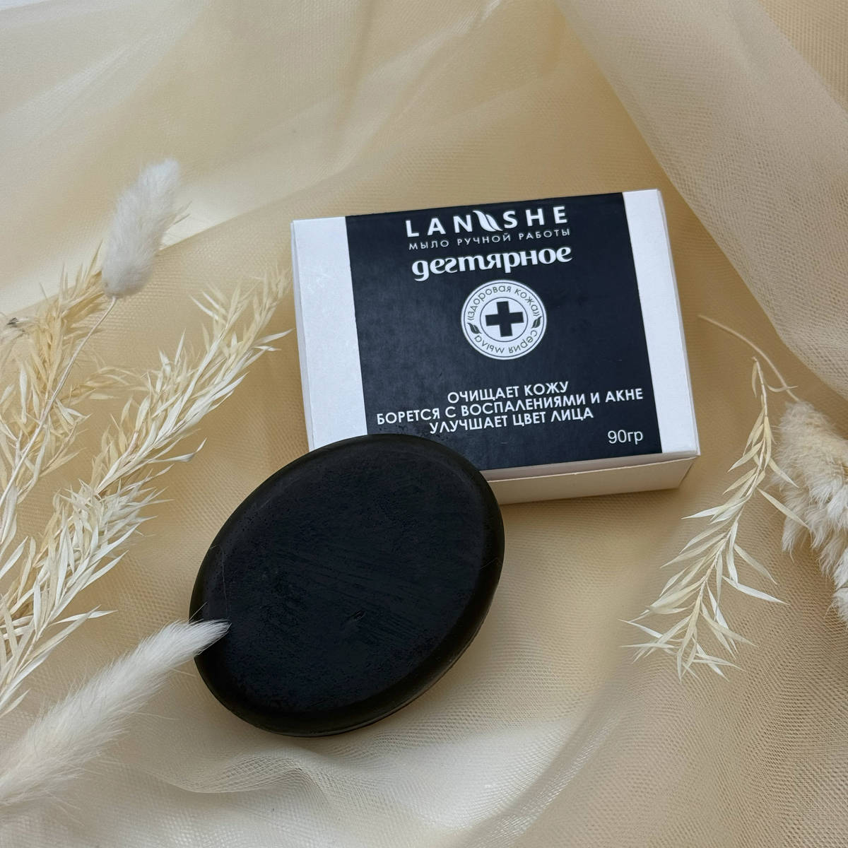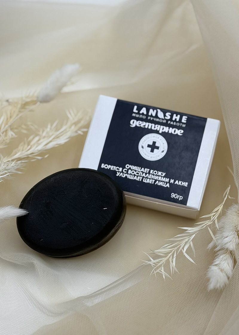 Мыло ручной работы с натуральным берёзовым дегтем. Бережно очищает, успокаивает кожу и помогает поддерживать её здоровье и свежесть.