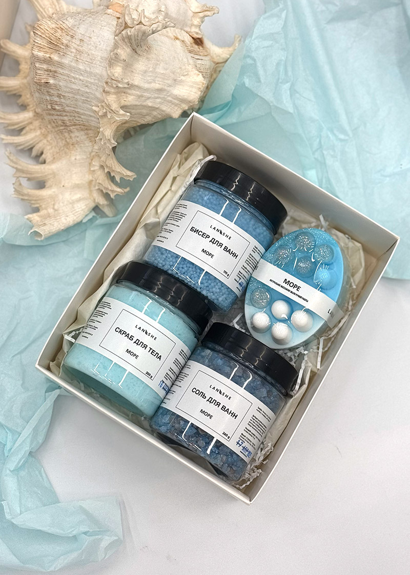 Свежесть, энергия и расслабление — всё это в одном ароматном SPA-наборе. Море окутывает мягким, чистым и лёгким морским ароматом, создавая атмосферу свободы, спокойствия и полной гармонии.